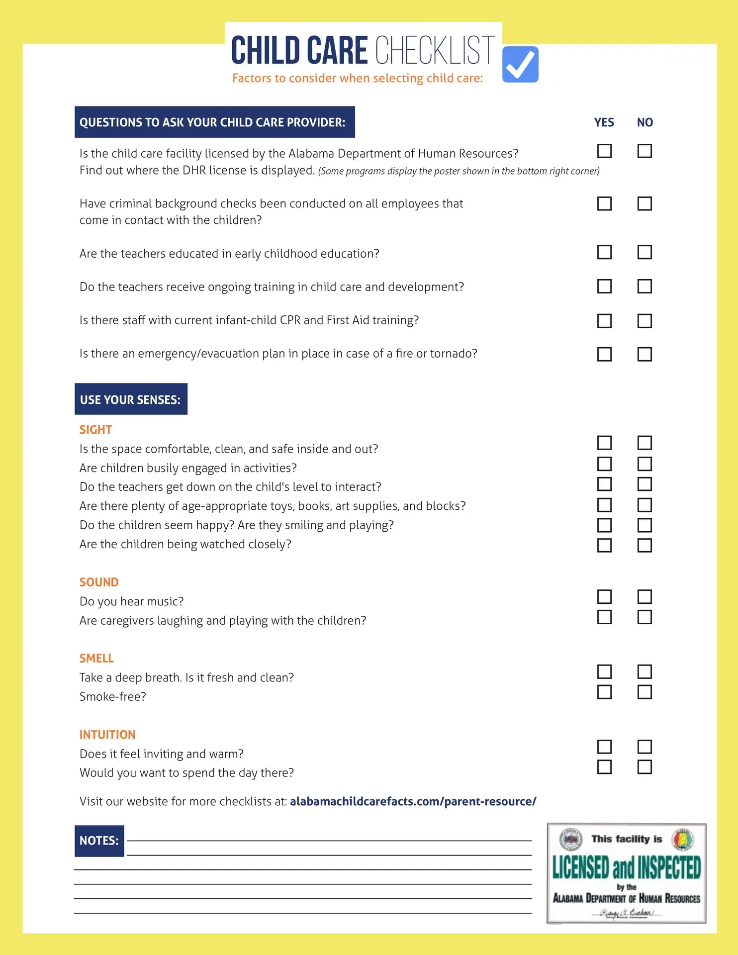 - Is the child care facility licensed by the Alabama Department of Human Resources (DHR)? Find out where the DHR license is displayed.